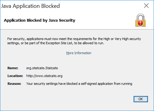 Once the Java security settings have been modified to allow Statcato, try to launch Statcato from your browser again.